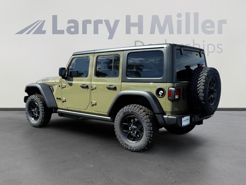 Delivers 23 Highway MPG and 18 City MPG! This Jeep Wrangler delivers a Regular Unleaded V-6 3.6 L/220 engine powering this Automatic transmission. QUICK ORDER PACKAGE 24W WILLYS -inc: 3.6L V6 24V VVT UPG I Engine w/ESS, 8-Speed Automatic 850RE Transmission, 7 & 4 Pin Wiring Harness, Conventional Differential Front Axle, Power Dome Dual Vented Hood, 4-Wheel Drive Swing Gate Decal, Black Grille w/Gloss Black Rings, Injection Molded Black Rear Bumper, Dana M210 Wide HD Tube Front Axle, Daytime Running Lamps LED Accents, Front LED Fog Lamps, LED Premium Reflector Headlamps, E-Locker Rear Axle, Corning Gorilla Glass, Security Alarm, Class II Receiver Hitch, Mold In Color Bumper w/Gloss Black, Advanced Brake Assist, Automatic Headlamps, Off-Road Plus Mode, Willys Hood Decal, Full Speed Forward Collision Warning Plus, Rock Protection Sill Rails, Power Heated Mirrors, Enhanced Adaptive Cruise Control, Auxiliary Switches, Dana M220 Wide Rear Axle, Molded in Color Rubicon Highline Flare, Premium Wrapped Steering Wheel, Sun Visors w/Illuminated Vanity Mirrors, CONVENIENCE GROUP -inc: Emergency/Assistance Call, 2-Door Passive Entry, Front Door Locks, Cluster 7.0" TFT Color Display, Universal Garage Door Opener, Heated Front Seats, Air Conditioning w/Auto Temp Control, Heated Steering Wheel, Air Filtering, BLACK, CLOTH LOW-BACK BUCKET SEATS.