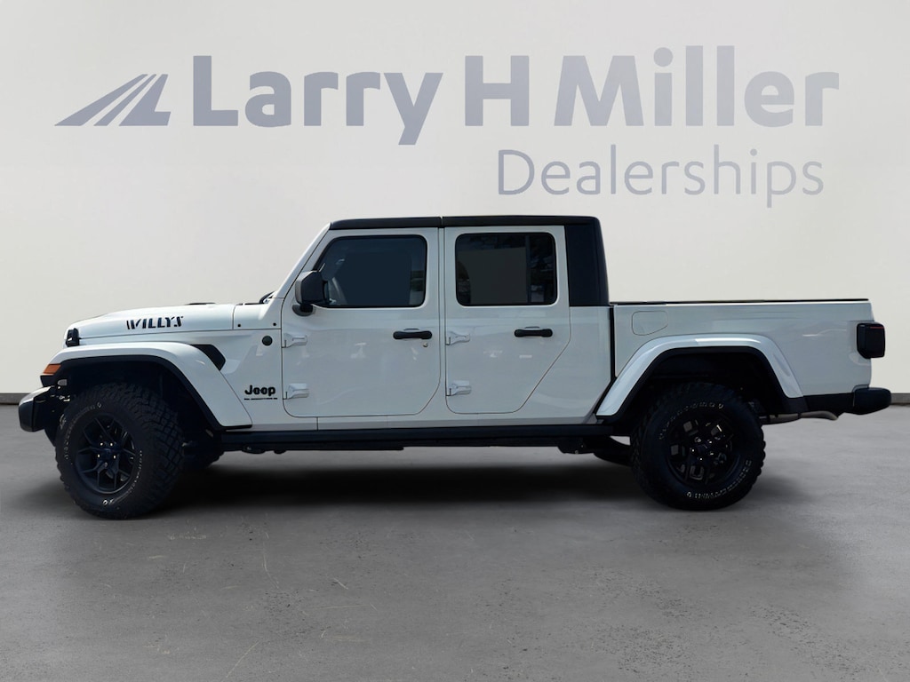 This 2025 Bright White Clearcoat Jeep Gladiator Willys 4WD is well equipped and includes these features and benefits: Quick Order Package 24W Willys (4-Wheel Drive Decal, Advanced Brake Assist, Air Conditioning w/Auto Temperature Control, Automatic Headlamps, Auxiliary Switches, Black Grille, Body Color Fender Flares (2-Piece), Class IV Receiver Hitch, Cluster 7.0 TFT Color Display, Daytime Running Lamps LED Accents, Deep Tint Sunscreen Windows, E-Locker Rear Axle, Enhanced Adaptive Cruise Control, Front Door Locks 2-Door Passive Entry, Front Heavy Duty Red Accent Shock Absorbers, Front LED Fog Lamps, Full Speed Forward Collision Warning Plus, Heavy-Duty Engine Cooling, LED Premium Reflector Headlamps, LED Taillamps, Mold In Color Bumper w/Gloss Black, MOPAR All-Weather Slush Mats, Off-Road Plus Mode, Power Heated Mirrors, Premium Wrapped Steering Wheel, Protection Sill Rails, Rear Heavy Duty Red Accent Shock Absorbers, Security Alarm, Sun Visors w/Illuminated Vanity Mirrors, Trailer Hitch Zoom, Wheels: 17 x 7.5 Painted Black, Willys Hood Decal, and Willys Suspension), 110 MPH Vehicle Max Speed Calibration, 12.3 Touchscreen Display, 3.73 Rear Axle Ratio, 4-Wheel Disc Brakes, 4G LTE Wi-Fi Hot Spot, 8 Speakers, ABS brakes, Air Conditioning, Alexa Built-In, AM/FM radio: SiriusXM, Apple CarPlay, Apple CarPlay/Android Auto, Black 3-Piece Hard Top, Brake assist, Cloth Low-Back Bucket Seats, Compass, Connectivity - US/Canada, Delay-off headlights, Driver door bin, Driver vanity mirror, Dual front impact airbags, Dual front side impact airbags, Electronic Stability Control, Freedom Panel Storage Bag, Front anti-roll bar, Front Bucket Seats, Front Center Armrest w/Storage, Front fog lights, Front reading lights, Google Android Auto, Illuminated entry, Integrated roll-over protection, Low tire pressure warning, Normal Duty Suspension, Occupant sensing airbag, Outside temperature display, Overhead airbag, Panic alarm, ParkView Rear Back-Up Camera, Passenger door bin, Passenger vanity mirror, Power steering, Power windows, Radio data system, Radio: Uconnect 5 w/12.3 Display, Rear anti-roll bar, Rear reading lights, Rear Sliding Window, Rear Window Defroster, Remote keyless entry, Speed control, Split folding rear seat, Steering wheel mounted audio controls, Tachometer, Telescoping steering wheel, Tilt steering wheel, Traction control, Trip computer, USB Host Flip, Variably intermittent wipers, Voltmeter, and Wheels: 17 x 7.5 Black Steel Styled. 110 MPH Vehicle Max Speed Calibration, 12.3 Touchscreen Display, 3.73 Rear Axle Ratio, 4-Wheel Disc Brakes, 4-Wheel Drive Decal, 4G LTE Wi-Fi Hot Spot, 8 Speakers, ABS brakes, Advanced Brake Assist, Air Conditioning, Air Conditioning w/Auto Temperature Control, Alexa Built-In, AM/FM radio: SiriusXM, Apple CarPlay, Apple CarPlay/Android Auto, Automatic Headlamps, Auxiliary Switches, Black 3-Piece Hard Top, Black Grille, Body Color Fender Flares (2-Piece), Brake assist, Class IV Receiver Hitch, Cloth Low-Back Bucket Seats, Cluster 7.0 TFT Color Display, Compass, Connectivity - US/Canada, Daytime Running Lamps LED Accents, Deep Tint Sunscreen Windows, Delay-off headlights, Driver door bin, Driver vanity mirror, Dual front impact airbags, Dual front side impact airbags, E-Locker Rear Axle, Electronic Stability Control, Enhanced Adaptive Cruise Control, Freedom Panel Storage Bag, Front anti-roll bar, Front Bucket Seats, Front Center Armrest w/Storage, Front Door Locks 2-Door Passive Entry, Front fog lights, Front Heavy Duty Red Accent Shock Absorbers, Front LED Fog Lamps, Front reading lights, Full Speed Forward Collision Warning Plus, Google Android Auto, Heavy-Duty Engine Cooling, Illuminated entry, Integrated roll-over protection, LED Premium Reflector Headlamps, LED Taillamps, Low tire pressure warning, Mold In Color Bumper w/Gloss Black, MOPAR All-Weather Slush Mats, Normal Duty Suspension, Occupant sensing airbag, Off-Road Plus Mode, Outside temperature display, Overhead airbag, Panic ala
